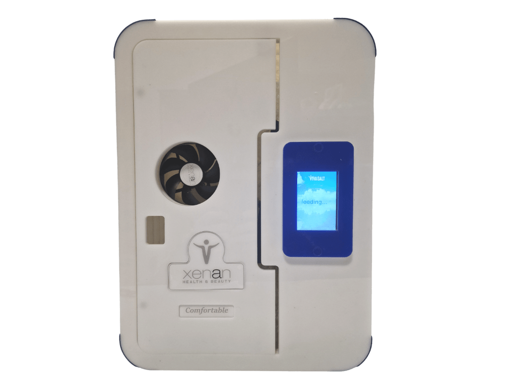 Der Halogengenerator wird für die Salztherapie (Halotherapie) benötigt. Es ist ein Gerät, das ein Salz-Aerosol erzeugt, welches in den Salz-Raum geblasen wird, durch tiefes Einatmen dringt es in die Atemwege ein und entfaltet seine Wirkung.